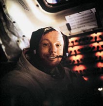 После этого астронавты проверили все системы лунного модуля на случай непредвиденного старта. Далее по плану шел сон продолжительностью 4 часа. И тут астронавты в нарушение программы попросили разрешения начать выход на Луну немедленно. Оно было получено. Едва коснувшись лунной поверхности левым ботинком своего скафандра, Нейл Армстронг произнес: «Это маленький шаг для человека, но гигантский скачок для человечества». Фраза, по словам самого Армстронга, была «хорошо подготовленным экспромтом», заранее выбранным из сотен поступивших до полета предложений.