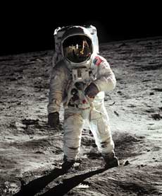 На широко известном снимке «первого человека на Луне» на самом деле изображен «второй» — Эдвин Олдрин. Но в темном светофильтре шлема его скафандра явственно видно отражение «фотографа» — Нейла Армстронга. Дело в том, что фотокамера была только одна, прикрепленная к скафандру Армстронга, поэтому фотографии первого человека на Луне не существует. Однако есть много телевизионных кадров с его изображением, хотя они менее четкие, чем фотографии. |