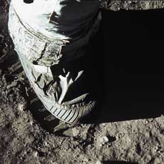 Частички лунного грунта плотно сцеплены между собой, поэтому следы на Луне очень четкие и, по расчетам, должны сохраниться там на многие тысячи лет. |
