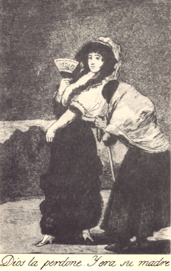 Барышня покинула дом совсем ребенком. Она училась ремеслу в Кадиксе и преехала в Мадрид, где ее повезло. Она отправляется в Прадо, и там грязная и дряхлая старуха просит у ней милостыню. Она прогоняет ее, старуха пристает. Щеголиха оборачивается и видит-подумать только!- что нищенка-ее мать.