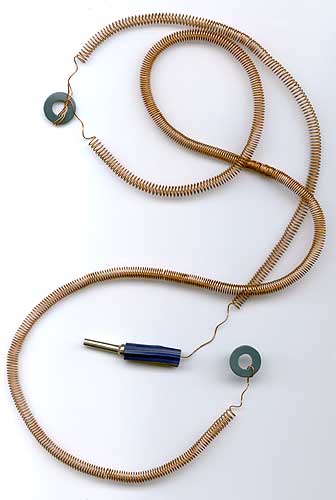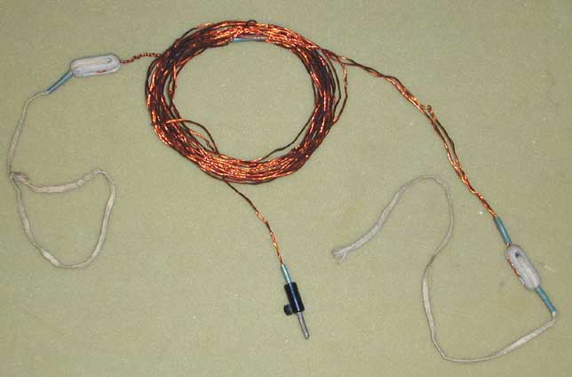 Широко продаваемая в 1960-1970-х спиральная комнатная антенна. Будучи растянутой под потолком комнаты и имея длину до десятка метров, обеспечивала неплохой прием на длинных, средних и коротких волнах, особенно на верхних этажах зданий без металлического каркаса. Иногда такая антенна использовалась как наружная, но ее изоляторы из низкосортной пластмассы или фибры непригодны для влажной среды. |