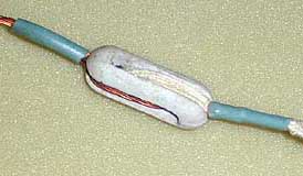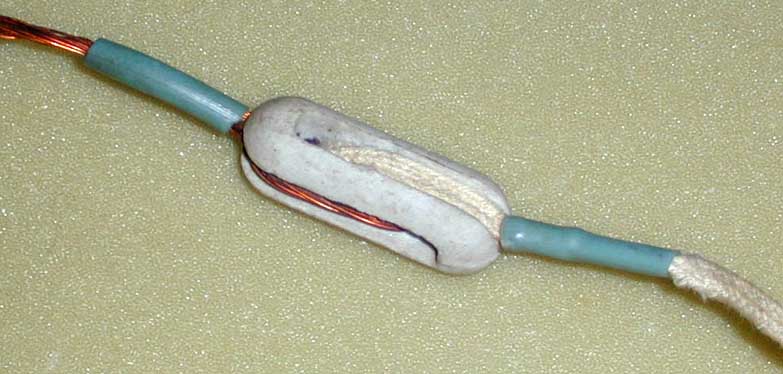 Такая конструкция пригодна для монтажа на открытом воздухе - многожильный медный канатик и качественно выполненные фарфоровые изоляторы. 1950-е годы. |