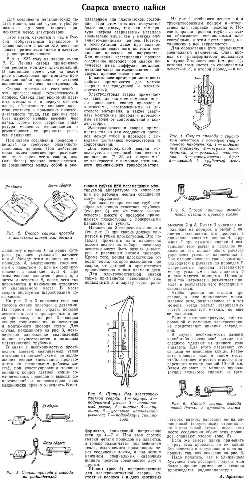 ("Радио", №7, 1954 год, стр. 12)Сварка вместо пайки