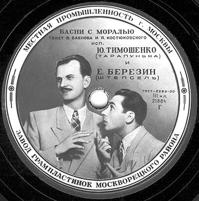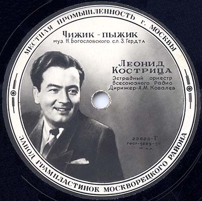 1954. A plate of a very popular variety singer of those days - Leonid Kostritsa (Moskvoretsky District Works). Right - reverse side. |