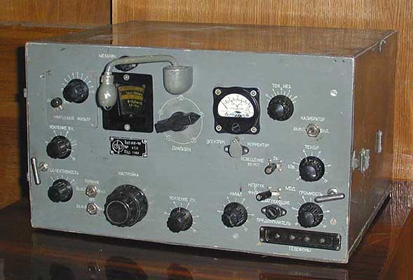 Радиоприемник КВ-М честно трудился на фронтах Великой Отечественной. После ее окончания обрел вторую жизнь на коллективных и индивидуальных любительских радиостанциях. Достаточно раскрыть, например, любой номер журнала "Радио" 50-х годов - и можно увидеть его на репортажных фотографиях связистов-любителей и профессионалов. Собран на 16 однотипных прямонакальных лампах “малогабаритной” серии (2К2М) и может питаться от батарей или сетевого блока питания. Непрерывный диапазон перекрытия приемника от 1,5 до 27,4 МГц разбит на 5 поддиапазонов. В схеме применены кварцевый калибратор и фильтр, глубокие регулировки усиления ВЧ и ПЧ, индикация питающих напряжений.Удобная поворотная лампа подсветки рабочего стола облегчала работу оператора в сложных условиях.