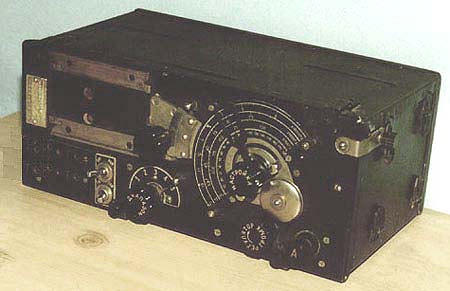 Восьмиламповая схема на ранних октальных металлических лампах. Пять диапазонов - длинные (175-350 КГц), средние и короткие волны от 1 до 12 МГц. Внешнее питание анодов и накала. 1940-50-е годы.