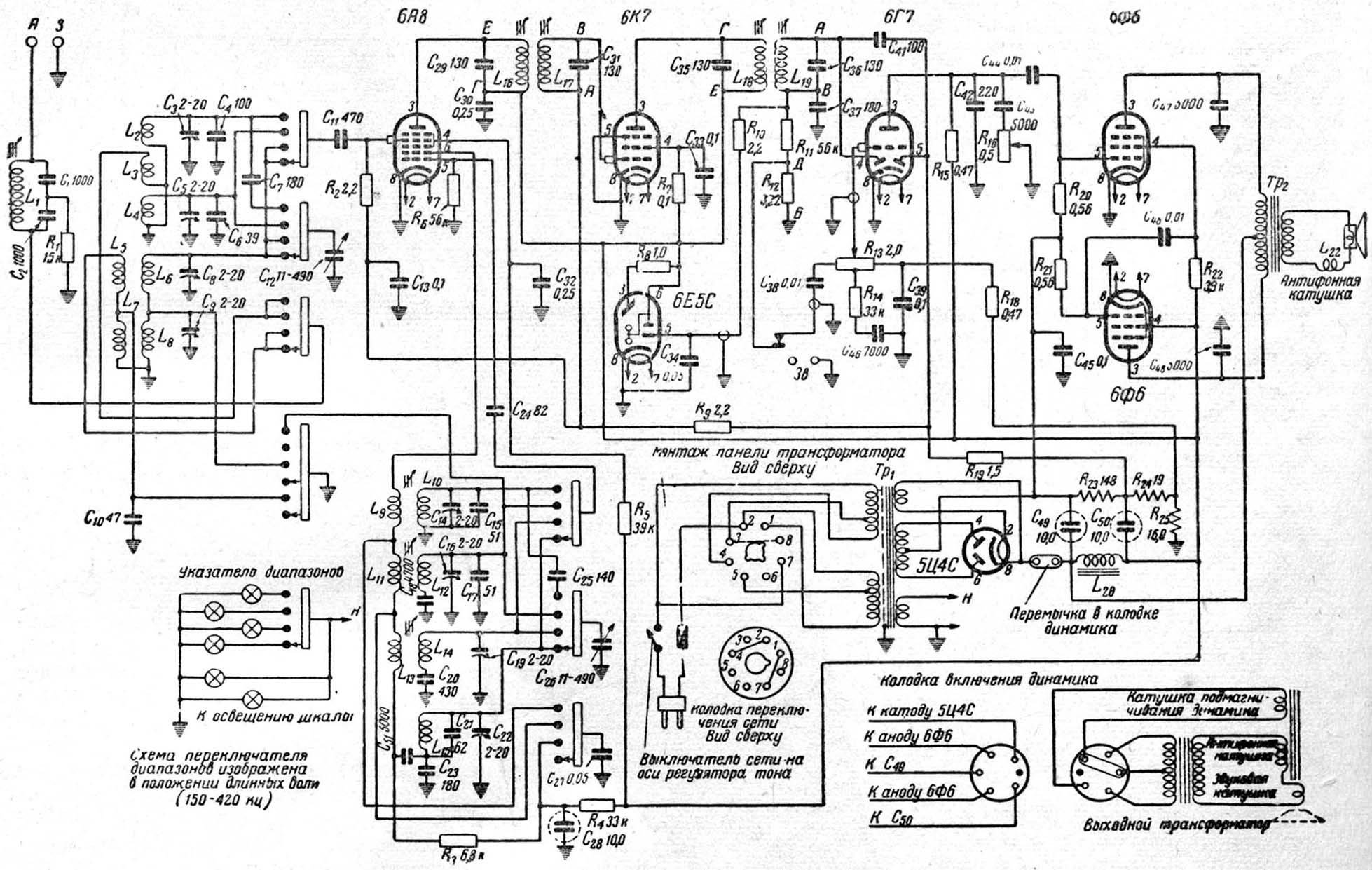 6А8, 6К7, 6Г7, 6Ф6, 6Ф6, 6Е5, 5Ц4С.