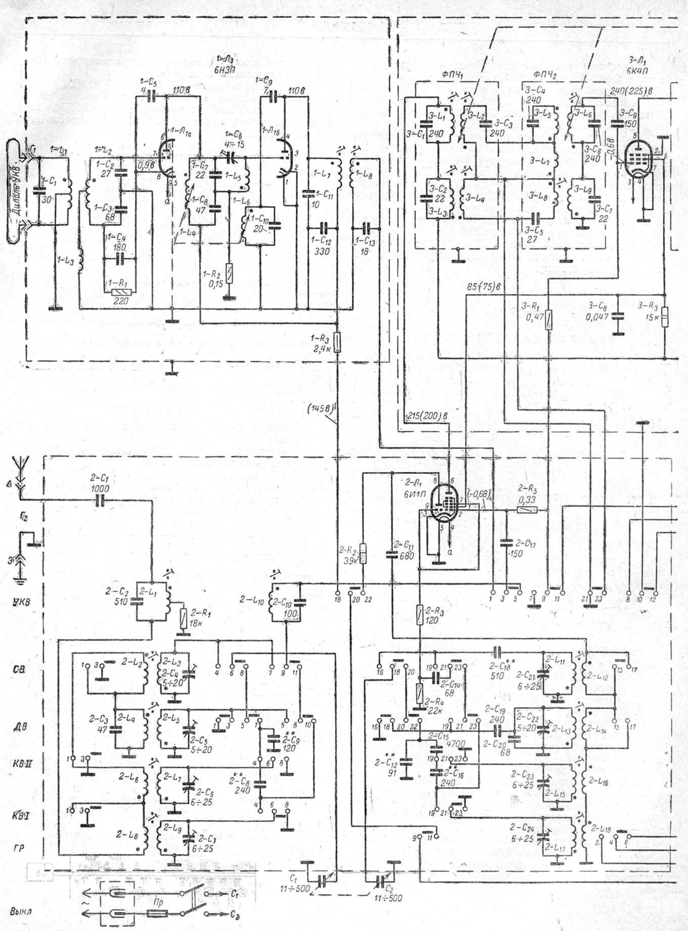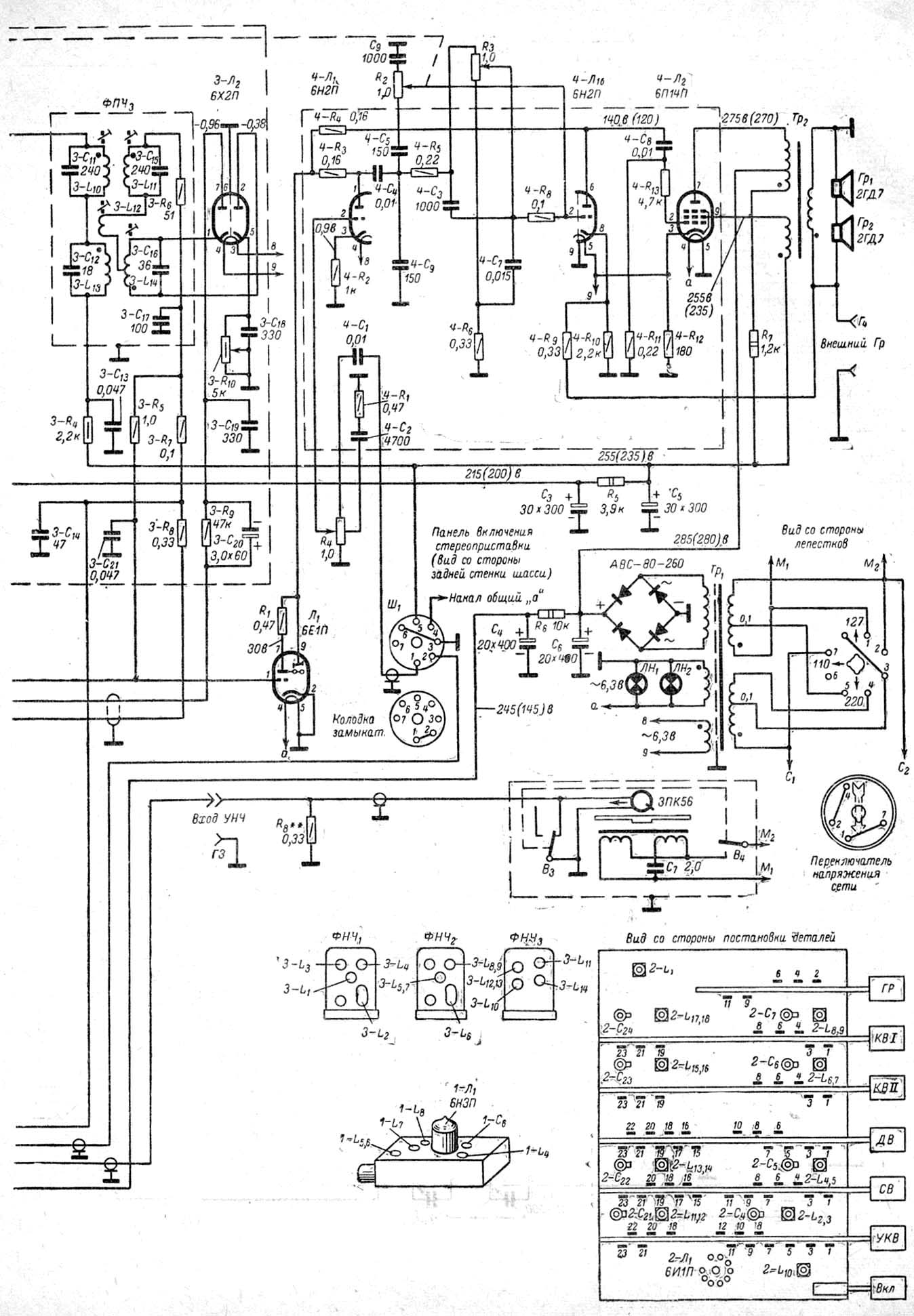 Набор ламп: 6Н3П, 6И1П, 6К4П, 6Х2П, 6Н2П, 6П14П, селеновый мост АВС-80-260