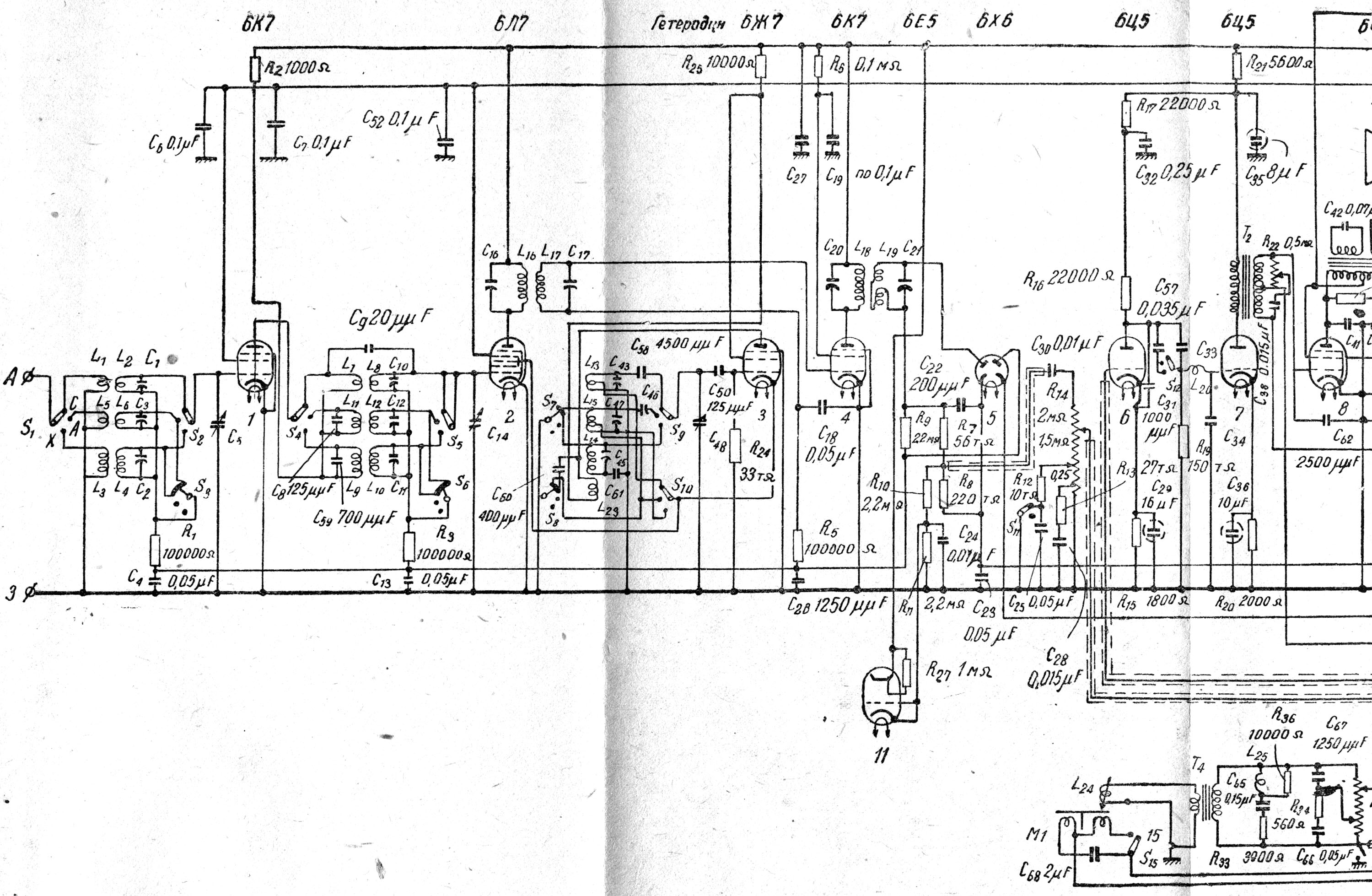 6К7, 6Л7, 6Ж7, 6К7, 6Е5, 6Х6, 6Ф5, 6Ф5, 6Ф6, 6Ф6, 5Ц4С.