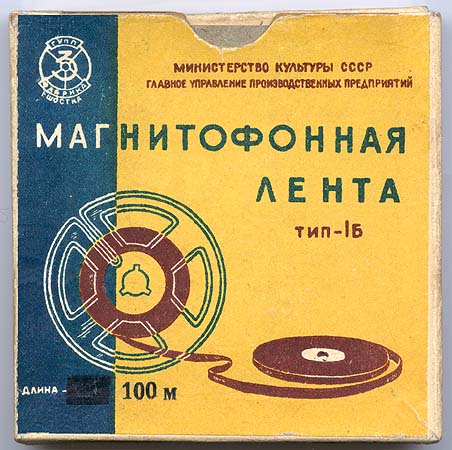 Первый образец отечественной бытовой магнитной ленты - "Тип - 1" - начал выпускаться с 1954 года на Шосткинском химзаводе ("Фабрика-3") в Сумской области, Украина. На основу из диацетатцеллюлозы наносился порошок гамма-окиси железа с кристаллами кубической формы. На применение такой ленты были рассчитаны первые бытовые магнитофонные приставки ("Волна", МП-2) и магнитофоны ("Днепр", МАГ-57 и пр.). Самые первые магнитофоны были однодорожечными - дорожка записи занимала всю ширину ленты. |