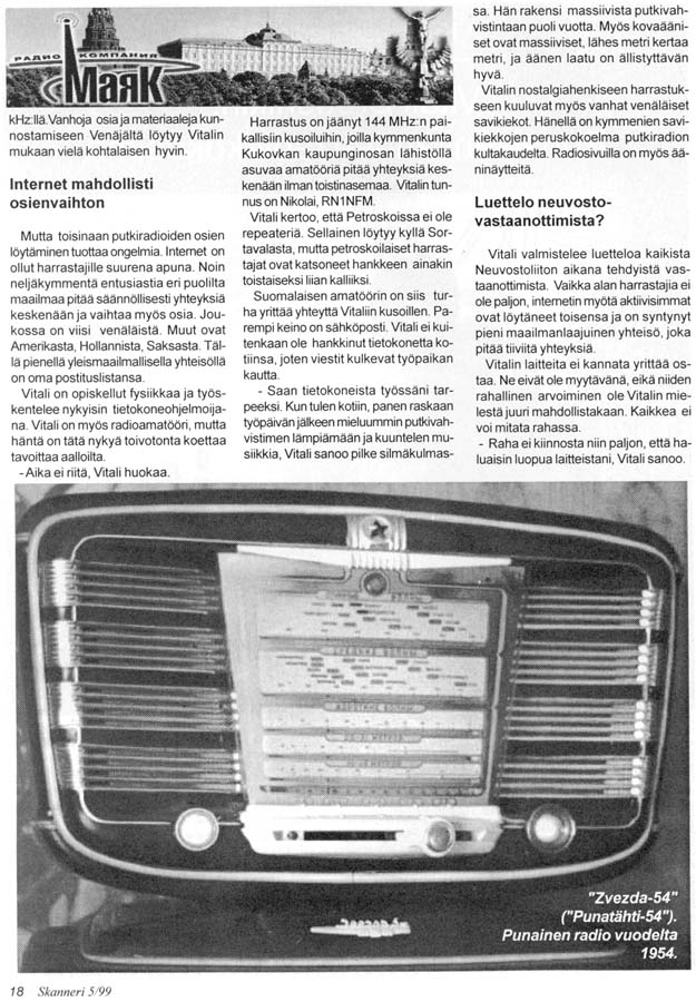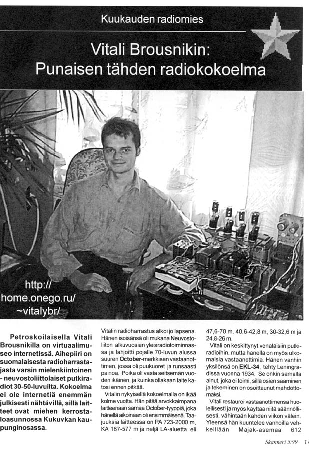 Публикация в финском радиолюбительском журнале "Skanneri" №5 за 1999 г.: