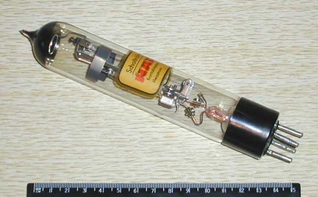 УО-186. "Знаменитый" прямонакальный триод, высочайшая линейность которого до сих пор приводит в трепет аудиофилов. Завод "Светлана", 1940. |