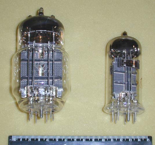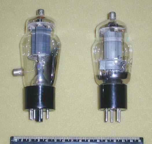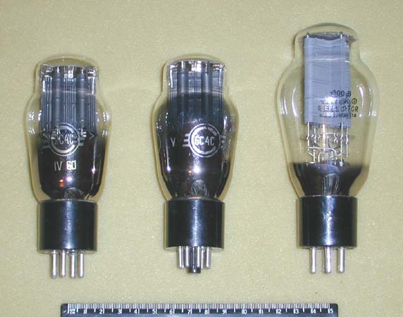 Прямонакальные триоды - своего рода фетиш для аудиофилов. Слева – 2С4С (ее выдает старинный цоколь) и 6С4С - не правда ли, так похожи на кенотрон 5Ц3С? На Ленинградском заводе “Светлана” для их производства использовалась одинаковая арматура. Если где-то есть большие запасы 5Ц3С, там, бывает, “прячется” и случайно попавшая туда 6С4С – автору повезло однажды…Разработанные для целей радиосвязи, 2С4С и 6С4С были и остаются привлекательными для аудио в силу их отменного качества звучания. Венчает триаду несравненная 300В. Ее конструкция разработана в 1930-х годах специалистами американской фирмы Western Electric непосредственно для звукового применения. Лампа выпускается до сих пор в нескольких странах без изменения конструкции. На снимке – отечественная, Саратовского завода “Рефлектор” (экспортная марка “Sovtek”). Как утверждают адепты 300В, ничего лучшего для звука с тех пор так и не придумано. А качество оригинальных ламп фирмы WE остается и поныне недостижимым.