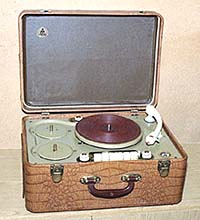 Переносный аппарат включает в себя магнитофон и электропроигрыватель. Магнитофон - двухскоростной, двухдорожечный, с клавишным управлением режимами и электроннолучевым индикатором уровня записи. Блок головок расположен под диском проигрывателя. Проигрыватель имеет скорости 78 и 33 об/мин и укомплектован звукоснимателем с корундовыми иглами. Масса 18 кг. Московский завод МЭМЗ. Модель 1956 года.