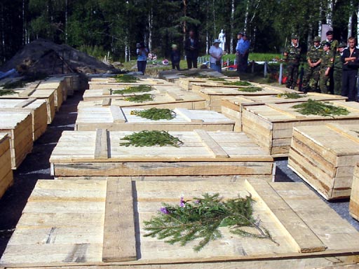 14 августа в Питкярантском районе на Мемориальном комплексе в Долине героев вновь состоялось захоронение останков воинов-красноармейцев, погибших в период Советско-финляндской войны. Длилась эта военная кампания 5 месяцев - с ноября 39-го по март 40-го года. "Незнаменитая" война, как окрестили её историки, только на Питкярантском направлении унесла жизни 35 тысяч наших бойцов. Для сравнения, общие потери Финляндии во время Зимней войны (1939 -1940) составили 21 013 военнослужащих. Работы по обнаружению и захоронению советских воинов длятся в суровых питкярантских лесах многие годы. В течение последних трёх лет в окрестностях деревни Койриноя обнаружены останки пятисот тридцати четырёх солдат, павших зимой 40-го. По найденным личным вещам удалось из чуть более полутысячи солдат установить имена 25 бойцов, в основном 11-й и 18-й стрелковых дивизий. Совместно с питкярантскими поисковиками, патриотической группой "Память", в раскопках и перезахоронении воинов приняли участие два поисковых отряда из Курганской области и военно-патриотический клуб "Гвардия" удмуртского города Сарапул. Кстати, "гвардейцы" приезжают в питкярантский район с 1997 года и, по словам руководителя удмуртских следопытов Татьяны Кузнецовой, это и есть пример гражданско-патриотического воспитания молодого поколения. Радует, что юноши и девушки приезжают сюда по зову сердца, чтобы увековечить память воинов из разных республик бывшего Советского Союза. Понятно, что во время войны под пулями и взрывами снарядов сложно было захоронить всех, а это значит, что у поисковиков впереди ещё много работы. Предание земле погибших бойцов состоялось со всеми воинскими почестями. Эхом отозвались в питкярантских лесах ружейные залпы, память воинов почтили скорбной минутой молчания, по христианской традиции отзвучал поминальный молебен. Все установленные имена воинов будут увековечены на гранитной плите. И теперь родственники погибших, которых ещё предстоит отыскать через Центральный военный архив Министерства обороны России, смогут приехать на эту священную питкярантскую землю, обильно политую кровью наших солдат и офицеров, чтобы возложить сюда цветы и поклониться могилам своих предков, людям, чей ратный подвиг останется в сердцах поколений. МУ "Центр культуры, спорта и туризма" благодарит за помощь в организации и проведении мероприятий по захоронению: ОАО "ЦЗ "Питкяранта", ЗАО "Ладожский лесопильный завод", Питкярантское ДРСУ - ГУП РК "Мост", ОАО "Ладэнсо". см. так же День победы в Питкяранте, 63-я годовщина освобождения города.