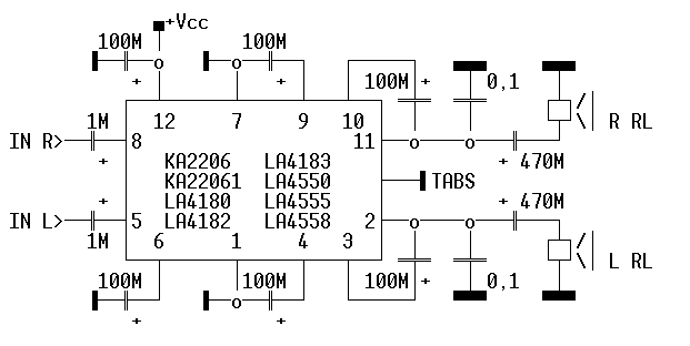 Схема на KA2206,22061,LA4180,4182,4183,4550,4555,4558