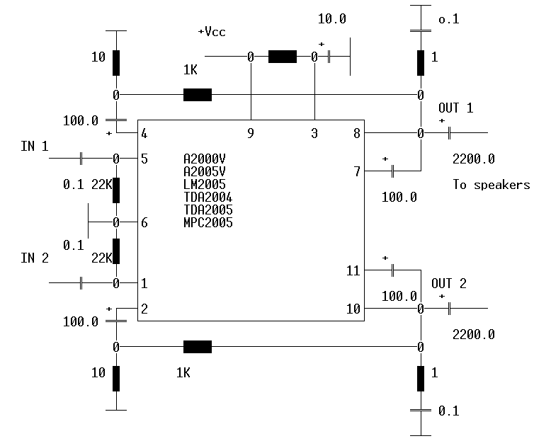 Схема на TDA2004,2005,A2000V,2005V,LM2005,MPC2005