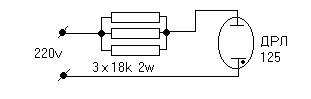 Я не использовал реле времени. У меня ДРЛ125 (внутренняя ее часть) подключена через три параллельно соединенных резистора 18кОм 2Ватта = 6кОм 6Ватт. Работает так уже лет шесть. Стирает с расстояния 1см в течении 5-10 минут. Лампа абсолютно холодная.